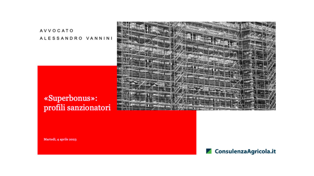 Ieri Alessandro Vannini ha partecipato a un webinar organizzato da ConsulenzaAgricola.it in tema di bonus edilizi, soffermandosi in particolare sugli aspetti sanzionatori connessi al superbonus.